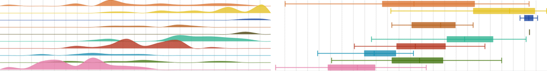 除了Metric(测度)和CATEGORY(类别)外,还可以改变TYPE(可视化类型):joy plot、箱形图、热力图、直方图。