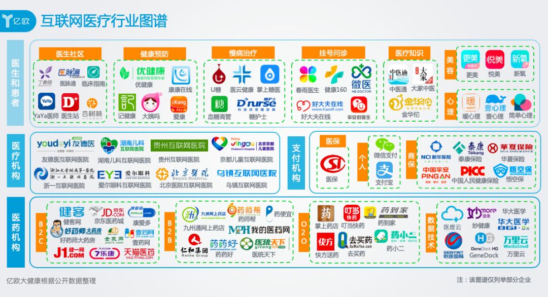 药品加成取消、处方外流……等深化医改的政策组合拳,使药品红利开闸。互联网医疗医药电商平台通过线上订购,线下药店领取等方式,率先在“医药保”产业链闭环中“C位出道”。但由于国家监管政策不明朗,药品所需配送条件较高等因素,大部分医药零售企业对电商持观望态度,只有小部分医药连锁试水。