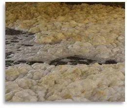 2) 泡沫,该异常将导致二沉池中污泥不易沉降,降低污泥的沉淀性能,使出水水质恶化,严重时会溢出曝气池,同时伴随刺激性气味,给污水处理厂的运行和管理带来很多麻烦;