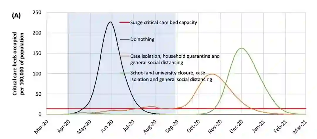 但是考虑到全面的封锁带来的经济代价,以及不能全面检测所有疑似病例,帝国理工大学COVID-2019应对小组认为,无论采取什么措施,都无法完全消灭病毒,疫情在短期内并不会得到有效的控制,而最有效的方式可能是一种“严格-放松”循环政策,当重症监护病房的人数激增时,政府会采取的严格的限制措施,但是,新增病患人数下降后,这些措施会逐步得到放松。