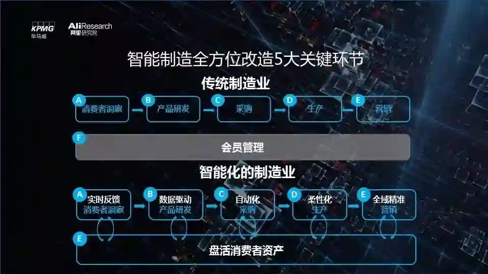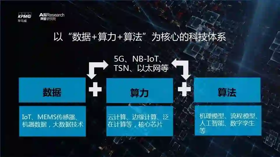 毕马威中国联合阿里研究院共同发布《从工具革命到决策革命—通向智能制造的转型之路》(以下简称“报告”), 深入讨论智能制造的基础与内涵。报告以“数据+算力+算法”这一大技术体系为核心,从产业链的视角详细阐述了科技对制造业五大生产环节的全面提升和重构。并在此基础上,提出了智能制造的四条赋能路径,全面解读智能制造带来的“工具+决策”两个维度的革命性机遇。