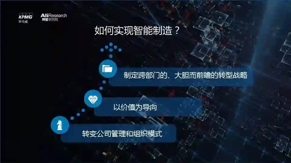 此外,报告还从经济进步和企业发展的角度审视了智能制造的意义。智能制造颠覆了传统产业几百年来赖以生存的“传统工具+经验决策”的发展模式,掀起了在工具和决策两个维度上的深层次革命。工具革命大幅提高了生产效率,而决策革命则通过人工智能等手段优化决策的准确性、及时性、科学性,实现真正意义上的智能化生产。“随着全球化竞争的加剧,创新的作用愈发凸显,制造业企业必须加紧实现智能化转型,发展先进制造业。”毕马威中国首席经济学家康勇表示,“为此,企业必须建立具有前瞻性的、以价值为导向的、跨部门的智能制造发展战略,才能在激烈的竞争中夺得先机!”