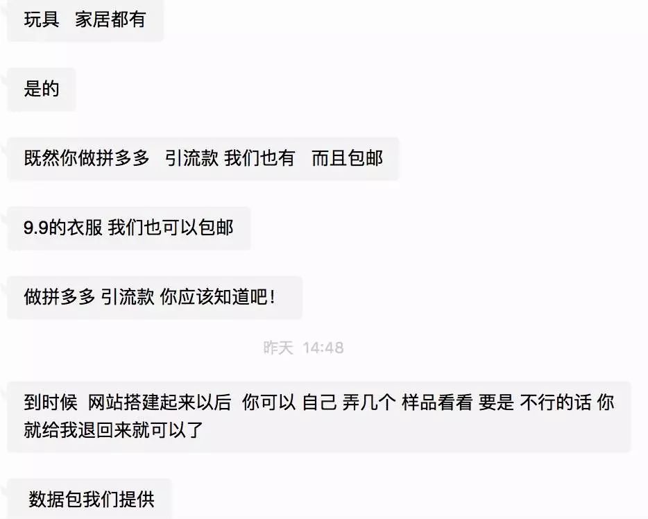 面对千篇一律的提问,小张最常用的回复是:「你去看看现在拼多多的商品,你想想价格战能不能打赢。」