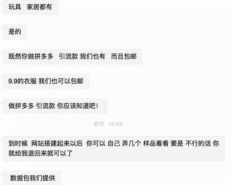 我被小影拉到一个拼多多货源供应的群中,里面多位代理商在推销自己的货源。