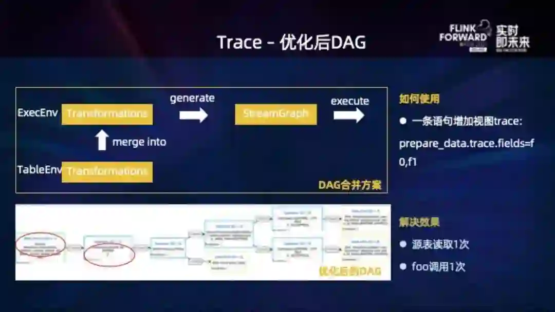 左下就是我们优化后的 DAG,读取源表以及调用 foo 方法都只有一次: