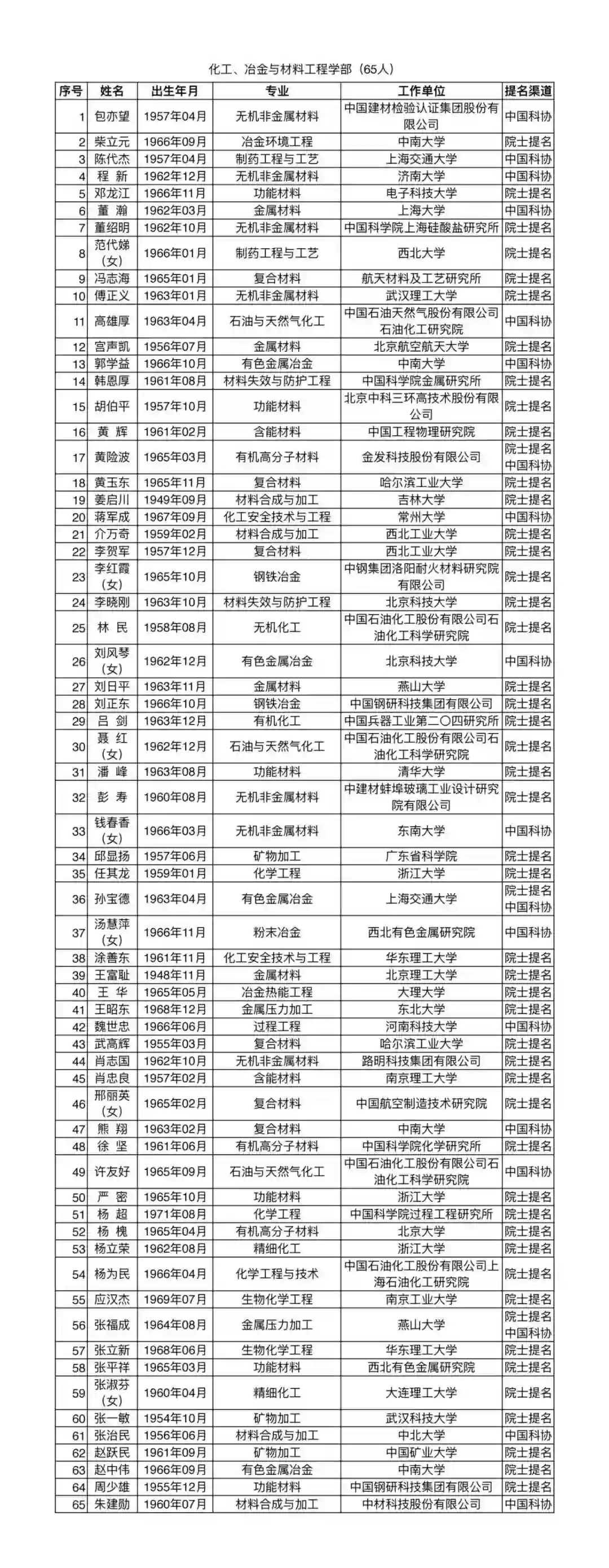 候选人的年龄原则上不超过65周岁(按增选当年6月30日实足年龄计算)。凡已合计连续3次被提名至中国工程院和被推荐至中国科学院的有效候选人,停止1次候选人资格。候选人可单独通过院士(包括院士组成的特别提名小组)或有关学术团体提名,也可以同时通过以上两种渠道提名;不受理个人申请。