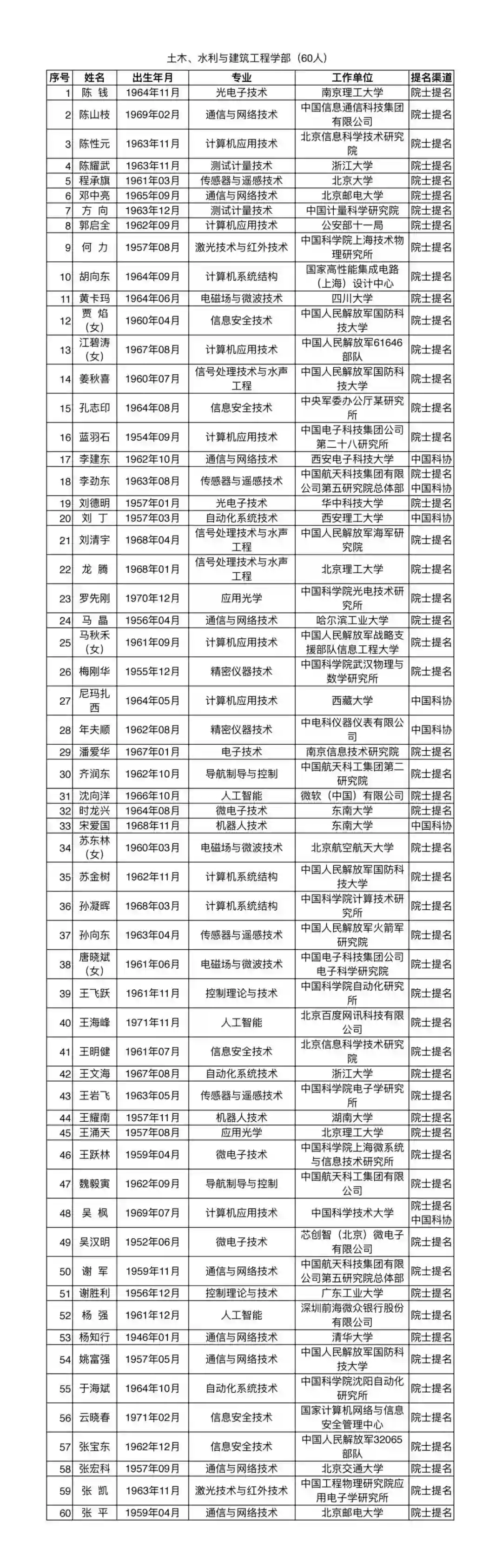 其中,名单中信息与电子工程学部共增选69名候选人,专业领域为“人工智能”的有微软(中国)有限公司沈向洋、北京百度网讯科技有限公司王海峰、深圳前海微众银行股份有限公司杨强、西安交通大学郑庆华、浙江大学庄越挺5人。