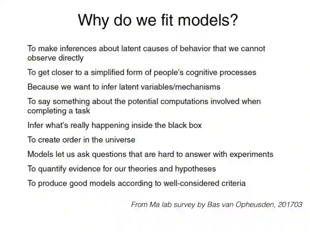 【导论】贝叶斯推理是一种高效的数学框架,可以解决真实世界中不确定环境下的最佳决策问题。本教程来自于纽约大学的行为贝叶斯建模速成班,详细讨论了为什么要进行贝叶斯行为建模,以及如何实现这一建模过程。