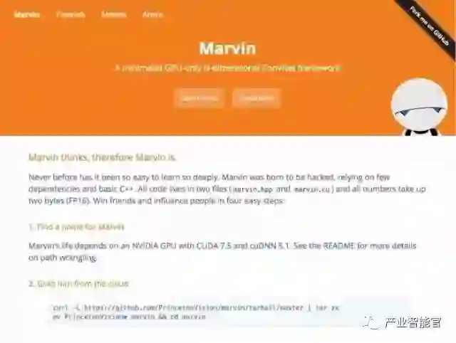 另一个相对近期的产品——Marvin 神经网络框架,是普林斯顿视觉集团的产物。Marvin“生来就是被黑的”,正如其创建者在该项目文档中解释的那样,该项目只依赖于一些用 C++ 编写的文件和 CUDA GPU 框架。虽然该项目的代码很少,但是还是提供了大量的预训练模型,这些模型可以像项目本身代码一样,能够在合适的场合复用或者根据用户的需要共享。