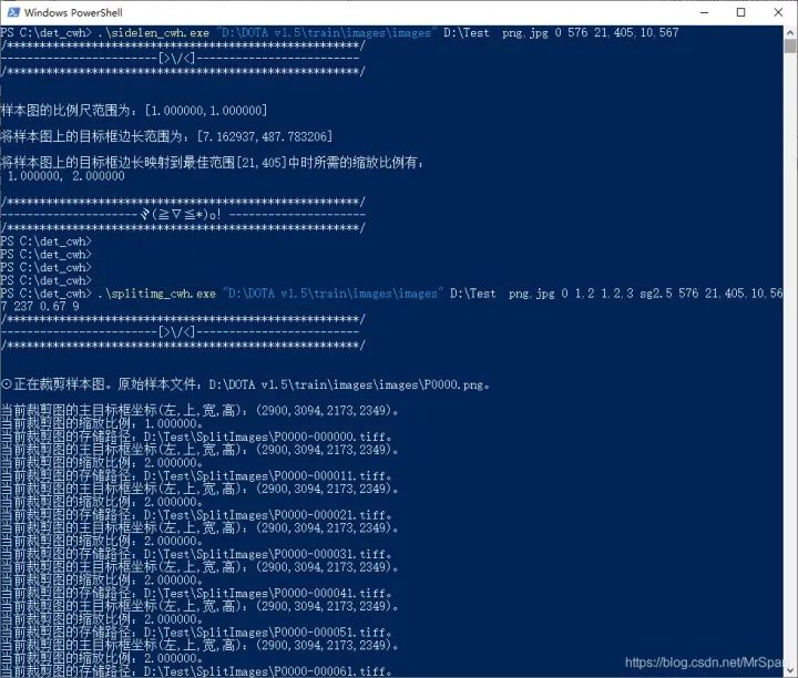 splitimg_cwh.exe "D:\DOTA v1.5\train\images\images" D:\Test  png,jpg 0 1 1,2,3 sg2.5 576 21,405,10,567 237,0.65 0.67 9这个工具除了输出裁剪出来的样本外,还会输出一个文本文件ANCHORS.txt和一个图像HIST.tif。