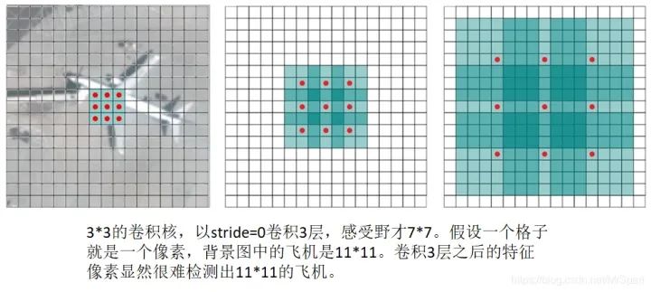 感受野是直接或者间接参与计算特征图像素值的输入图像像素的范围,直接感受野就是卷积核大小,随着卷积层数的加深之前层次的感受野会叠加进去。感受野小了缺乏环境信息,感受野大了引入太多环境干扰,所以一个网络能够检测的目标框范围与特征图像素或者特征向量的感受野有关,通常能够检测的目标框边长范围是感受野边长的0.1-0.5倍。