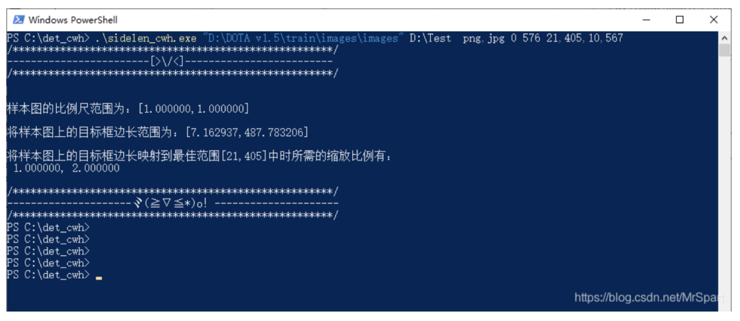 sidelen_cwh.exe "D:\DOTA v1.5\train\images\images" D:\Test  png,jpg 0 576 21,405,10,567这个工具会输出一个文本文件STATS.txt。其中内容为