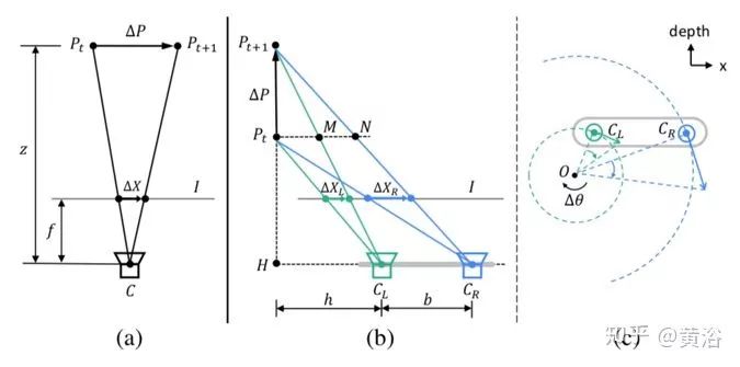 其中b是基线,h是左摄像头CL和线段PtPt+1之间的距离。