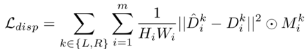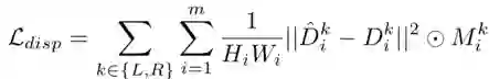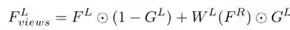 为双视角聚合,估计的左目视差DL将DeblurNet的右目特征FR变形到左目,即为WL(FR)。不用直接连接WL(FR)和FL,而是子网GateNet生成从0到1的软门图(soft gate map)GL。门图可以自适应选择方式用来融合特征FL和WL(FR),即选择有用的特征,并从另一个视角拒绝不正确的特征。例如,在遮挡或错误视差区域,门图值往往为0,这表明只采用参考视角F L的特征。GateNet由五个卷积层组成,如图所示,输入是左图像IL和变形的右图像WL(IR)的绝对差,即| IL - WL(IR)|,输出是单通道的门图。所有特征通道共享相同的门图以生成聚合特征: