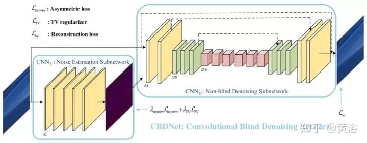 将如下定义的不对称损失引入噪声估计子网,并与重建损失结合一起,训练完整的CBDNet: