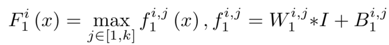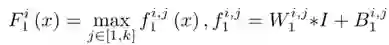 1) 特征提取:为了解决图像去雾问题的病态性,现有方法提出了各种假设,并且基于这些假设,在图像域密集地提取与雾度相关的特征,例如,著名的暗通道(dark channel),色调差和颜色衰减等;为此,选择具有特别激活函数的Maxout单元作为降维非线性映射;通常Maxout用于多层感知器(MLP)或CNN的简单前馈非线性激活函数;在CNN使用时,对k仿射特征图逐像素最大化操作生成新的特征图;设计DehazeNet的第一层如下