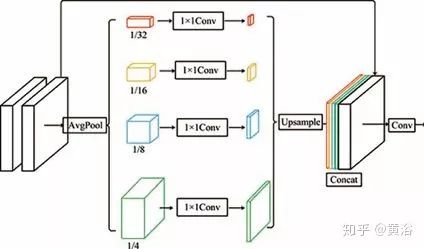 如图是EPDN架构的示意图,由多分辨率生成器模块,增强器模块和多尺度鉴别器模块组成。即使pix2pixHD使用粗到细特征,结果仍然缺乏细节并且颜色过度。一个可能的原因是现有的鉴别器在引导生成器创建真实细节方面受到限制。换句话说,鉴别者应该只指导生成器恢复结构而不是细节。为了有效地解决这个问题,采用金字塔池化模块,以确保不同尺度的特征细节嵌入到最终结果中,即增强块。从目标识别的全局上下文信息中看出,在各种尺度需要特征的细节。因此,增强块根据感受野模型设计,可以提取不同尺度的信息。