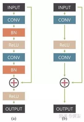 这是一种多尺度卷积神经网络,以端到端的方式恢复清晰的图像,其中模糊是由各种来源引起的,包括镜头运动、景物深度和物体运动。如图是定义的网络模型架构图,称为ResBlocks:(a)原始残余网络构建块,(b)该网络修正的模块化构建块;没有使用批量归一化(BN)层,因为训练模型使用的小批量(mini-batch)大小为2,比BN通常要小;在输出之前去除整流线性单元(ReLU)有利于提高经验性能。
