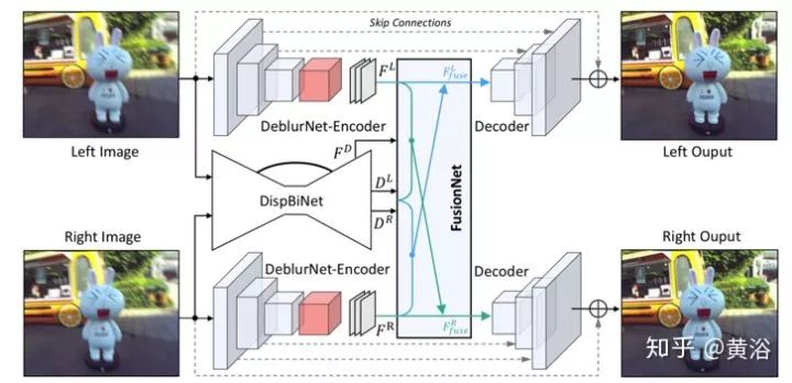 具有深度觉察和视角聚合(Depth Awareness and View Aggregation)的网络DAVANet是一个立体图像去模糊网络。网络中来自两个视图有深度和变化信息的3D场景线索合并在一起,动态场景中有助于消除复杂空间变化的模糊。具体而言,通过这个融合网络,将双向视差估计和去模糊整合到一个统一框架中。