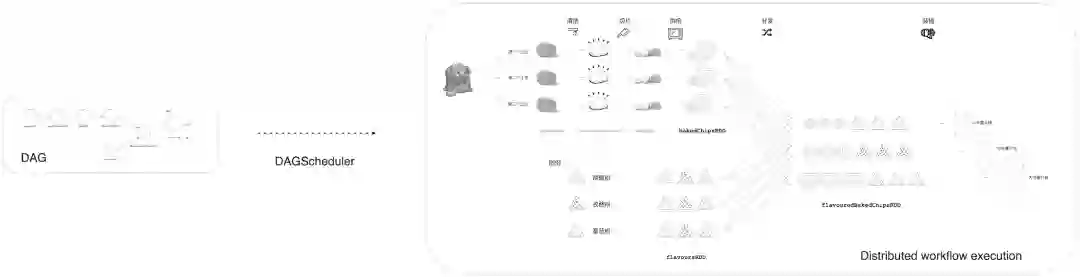 到此为止,我们的向导大人几乎跑断了腿、以首尾倒置的顺序对整片地形进行了地毯式搜查,最终将地形划分为 3 块战略区域(Stage)。那么问题来了,向导大人划分出的 3 块区域,有啥用呢?DAGScheduler 他老人家马不停蹄地这么跑,到底图啥?前面我们提到,DAGScheduler 的核心职责,是将抽象的 DAG 计算图转换为具体的、可并行计算的分布式任务。回溯 DAG、创建 Stage,只是这个核心职责的第一步,DAGScheduler 以 Stage(TaskSet)为粒度进行任务调度,伙同 TaskScheduler、SchedulerBackend 等一众大佬运筹帷幄、调兵遣将。不过,毕竟本篇的主题是 DAG,到 Spark 调度系统的核心还有些距离,因此这里咱们暂且挖个坑,后面再单独开篇(Spark 调度系统)专门讲述几位大佬之间的趣事逸闻。填坑之路漫漫其修远兮,吾将上下而挖坑。