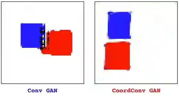 在训练 VAEs 的时候我们注意到了相似的模式。通过卷积,我们观察到图像中的部分物体时隐时现,但是使用 CoordConv 之后,物体的运动变得更加平滑。