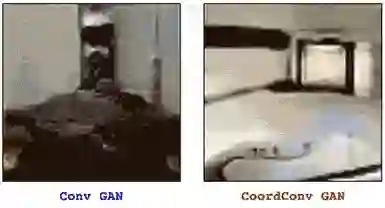 当使用较大的 GAN 绘制大规模场景理解(Large-scale Scene Understanding, LSUN)的卧室场景时,基于卷积的 GAN 再次出现对象物体时隐时现的问题。而使用 CoordConv 层的 GAN 则呈现出了平滑的几何变换,包括平移和形变。