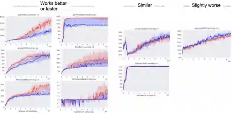 我们尝试过将 CoordConv 添加到自己构建的 Ape-X 平台上,但是 CoordConv 并没有立即提高性能。我们还尝试了 A2C,这是一种流行的策略梯度方法,这时候 CoordConv 开始发挥作用。这可能反映了学习显式策略和学习 Q 函数之间的差异。我们测试了 9 场比赛,相比于标准卷积,其中有 6 场的结果是采用了 CoordConv 的 A2C 训练速度更快,或者取得了更高的最终结果。正如预期的那样,我们注意到《吃豆人小姐》的分数获得了提高。有两场比赛,CoordConv 与标准卷积表现相似,而有一场比赛CoordConv 表现则比标准卷积稍微差一些。总的来说,这些结果表明 CoordConv 可能在强化学习中是有用的。