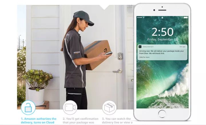Amazon Key 是亚马逊近期推出的「送货进门」服务,在家里安装亚马逊提供的摄像头和智能门锁套件后,每当快递员上门时就可以用专门的 App 给快递员开门,甚至还能监视快递员的一举一动。