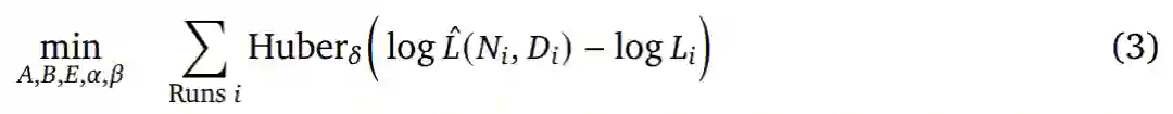 为了估计(𝐴, 𝐵, 𝐸, 𝛼, 𝛽),研究者使用 L-BFGS 算法来最小化预测和观察到对数损失(log loss)之间的 Huber 损失。
