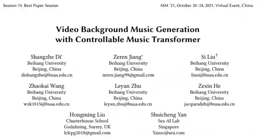 本文提出了 CMT,即一种可控的音乐变换器,它能够对上述节奏特征进行本地化控制,还能对用户指定的音乐流派和使用的乐器进行全局控制。客观和主观评价表明,采用我们的技术,生成的背景音乐与输入的视频的兼容性是令人满意的,同时音乐质量之高也令人印象深刻。