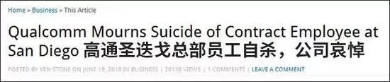 早在2010年和2012年,高通就曾发生过两起类似的员工自杀事件。高通总部所在地圣迭戈当地最大媒体《圣迭戈读者报( San Diego Reader)》资深专栏作者唐·保德(Don Bauder)写道,由于裁员带来的恐惧和财报不佳,高通的士气低迷已经不是一天两天了。