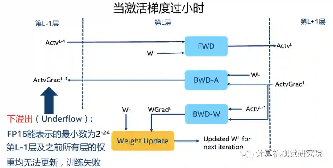 在深度学习中,由于激活函数的的梯度往往要比权重梯度小,更易出现下溢出的情况。