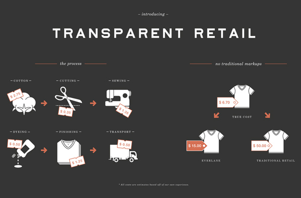 Everlane最核心的经营策略便是“价格透明”,在官网可以看到,一件商品会有3种价格: