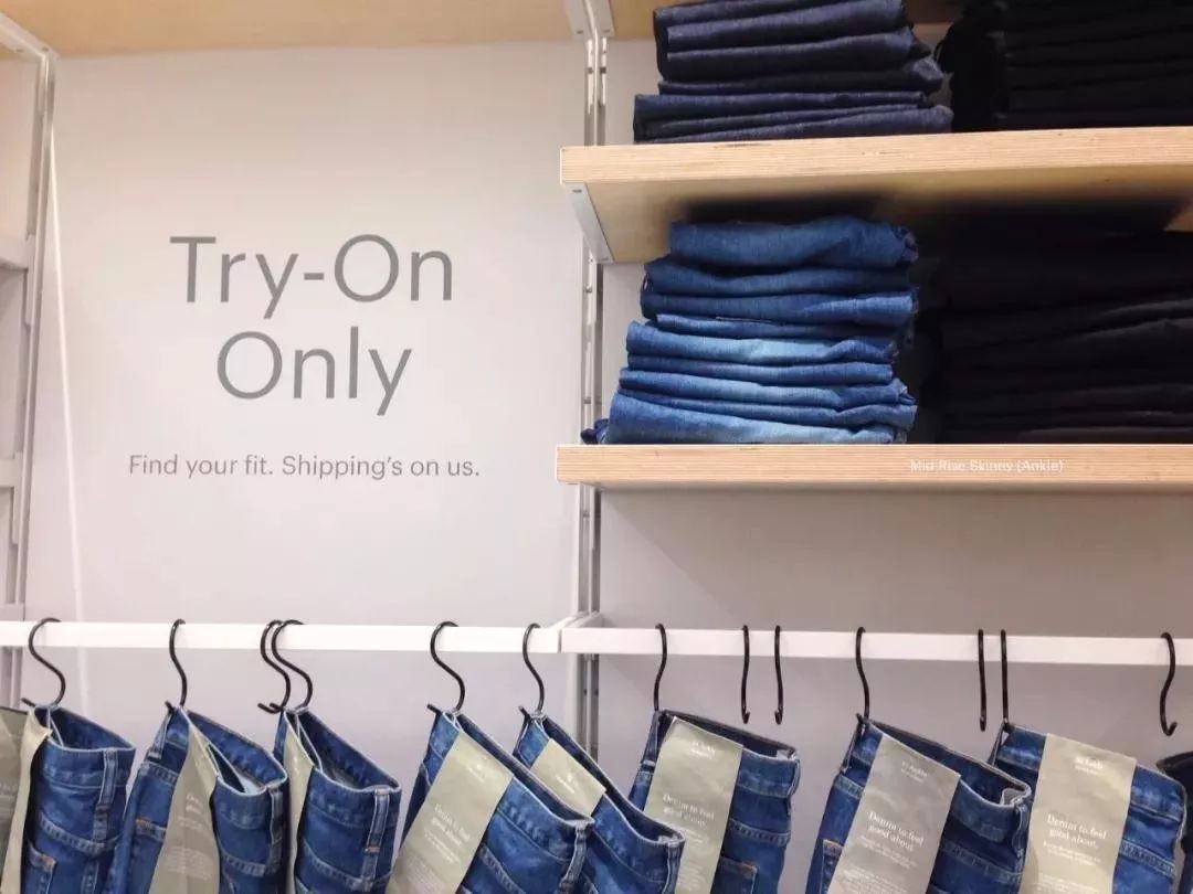 另外,牛仔裤是纽约店里唯一不能现场购买的产品,顾客只可以试穿,然后选择在线订货。牛仔裤款式众多,尺码也相应比别的产品多。