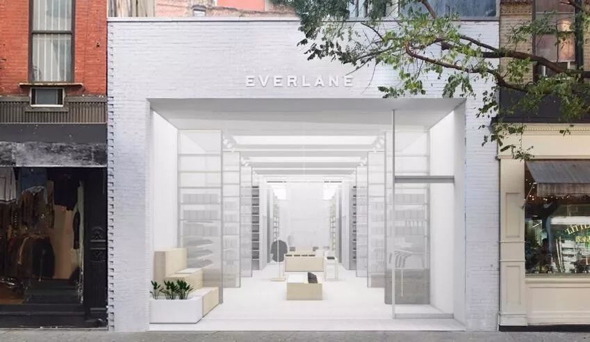 2017年12月,Everlane在纽约王子大街开出第一家品牌旗舰店。该店占地180多平米,空间设计以白色和粉色为主色调,搭配绿植、木头、花岗岩等元素,符合品牌简洁的风格和柔和的色彩风格。店内设置了三个休息区,可供举办社区活动、对话论坛等。