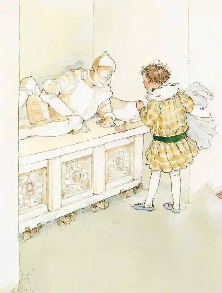 “是的,我对经典的故事和童话情有独钟。它们已经被画过无数次了,重复任何一次都毫无意义,但惊喜总是好的。一个听过无数的,古老的故事,却能让你感到惊奇,怎么做到的呢?秘诀就是假装你是第一次听到这个故事,假装这是一个全新的故事,忽略所有你在那个故事里的期待,避免一切与这个故事有关的陈词滥调。这并不容易,你得非常专注,尤其是当你已经看了很多过去的插画以后。”