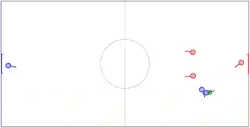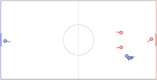 足球是一项团队运动,想要赢得比赛,球员必须相互配合。图 3 所示的是不太懂得相互配合的机器人足球赛。