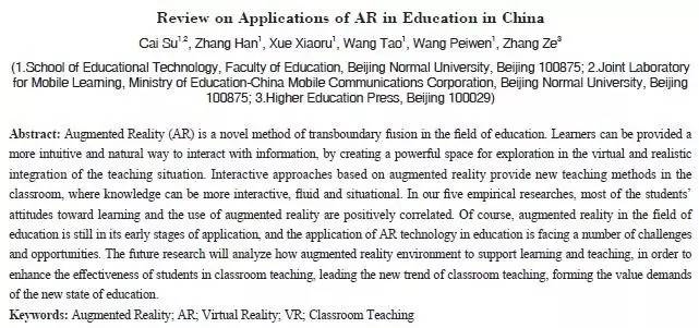 关键词:增强现实;AR;虚拟现实;VR;课堂教学