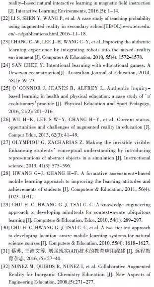 一些研究者都声明新技术能创设出真实的科学学习环境,以便让学习者在其中进行探究性学习[23-25]。增强现实技术作为当前研究热点之一的虚拟现实技术的分支,确实能为学生创设出一个科学探究的环境[26][27]。那么AR对学生究竟有什么样的影响?AR是否以及如何影响学生的深层次认知?学生对使用AR辅助学习的态度如何?本研究团队通过近几年在增强现实技术教育应用领域的实证研究探讨了上述问题。