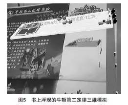蔡苏、宋倩和唐瑶[12]提出增强现实学习环境的架构,并基于此实现了一个增强现实概念演示书——未来之书。选取了中学物理中的单摆、牛顿第一定律、牛顿第二定律等实验进行虚实结合的展示,如图5所示。学习者只需通过简单的设备即能直观感受到平面书籍中所描述的实验场景,增强了学习者的兴趣。未来之书参展2010年第十七届北京国际图书博览会,获得好评。