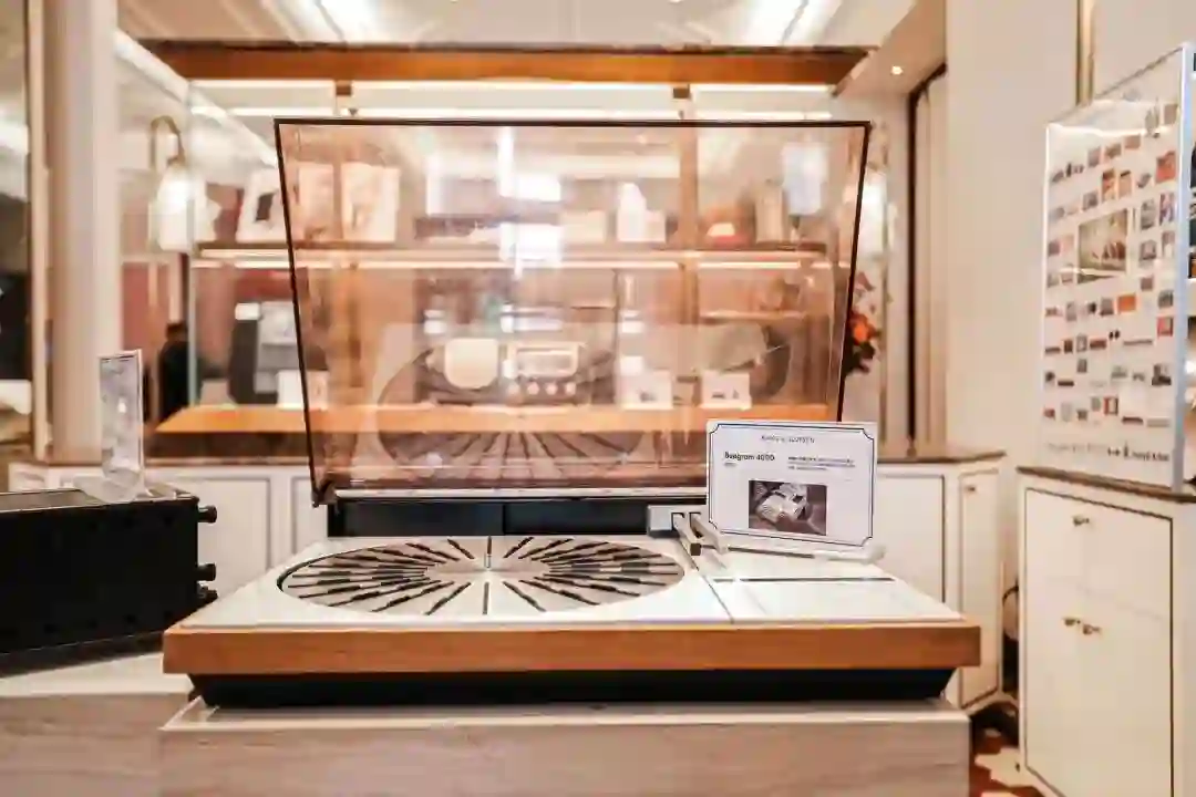 一到现场的我,第一眼就被上图右下角的物件所吸引,没错,它便是大名鼎鼎的 B&O Beogram 4000 黑胶唱片机,拥有横切式唱臂,由 Jacob Jensen 设计,于1972 年上市。即便过去了50年,Beogram 4000 依旧是许多音乐爱好者们心中的经典和传奇。