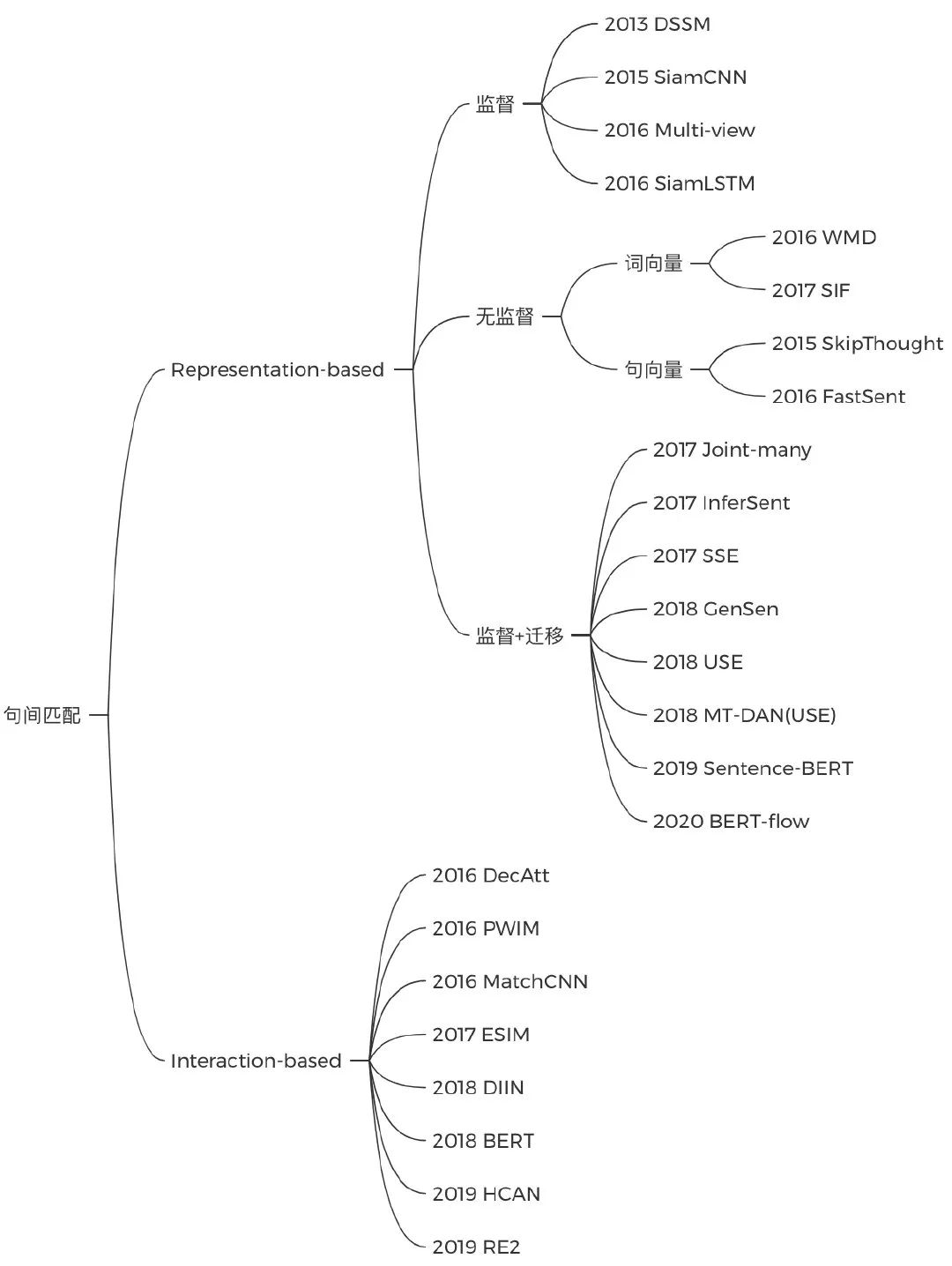 文本匹配会稍微复杂些,它有双塔和匹配两种任务范式。双塔模型可以先看SiamCNN,了解完结构后,再深入优化编码器的各种方法;基于匹配的方式则在于句子表示间的交互,了解BERT那种TextA+TextB拼接的做法之后,可以再看看阿里的RE2这种轻量级模型的做法: