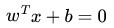 如果用x表示数据点,用y表示类别(y可以取1或者-1,分别代表两个不同的类),一个线性分类器的学习目标便是要在n维的数据空间中找到一个超平面(hyper plane),这个超平面的方程可以表示为( wT中的T代表转置):![]()