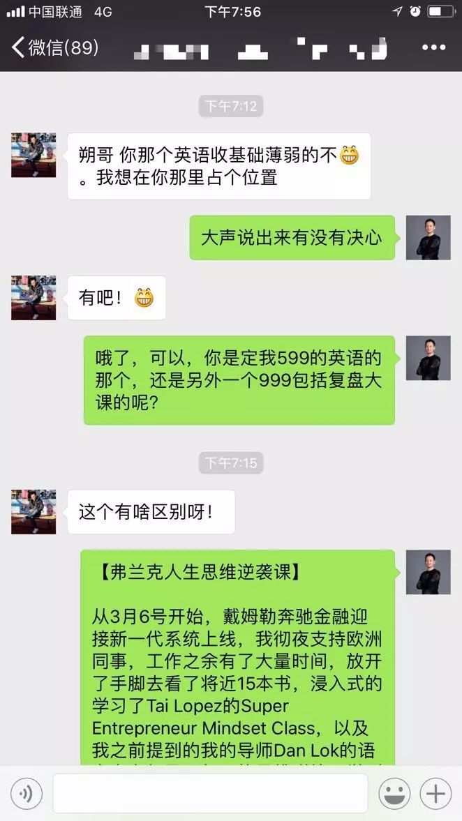 从2016年在北京图书馆埋头苦读查理芒格的书之后,鬼使神差的在心中那份岌岌可危的信念指引下,逼迫自己在英语微信群中做了一个“自我介绍”,到设立扇贝英语打卡单词营,到再到创立并运营目前处于疯长时期的「弗兰克 · 口语即人生」训练营,我一直在践行为他人提供价值的人生铁律。