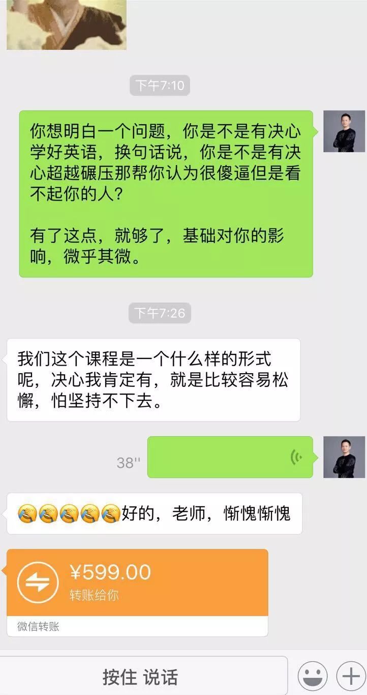 需要提醒的是,我不是告诉你买了课就可以躺着如何如何,我更不想跟你保证「今天买了我的课,明天就能学会口语,走向人生巅峰了」。