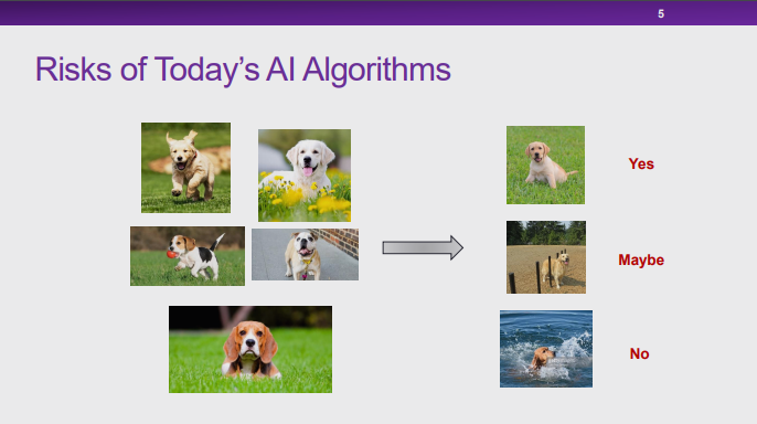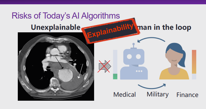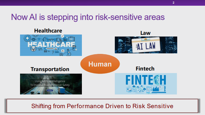 图 7:可解释性与稳定性的困境就当下的人工智能技术而言,由于缺乏可解释性,所以模型的使用者无法理解模型做出预测和决策结果的原因;另一方面,如果模型并不能在各种场景下维持足够稳定的高性能,我们也无法充分信任这些模型。目前,我们面临着人工智能模型的「可解释性」和「稳定性」都不能得以充分保证的窘境。实际上,如果我们能够保证模型具有足够稳定的高性能,对模型「可解释性」的要求在某种程度上也可以适当降低。以汽车驾驶为例,并不是所有人都明白汽车的工作原理,但是由于汽车技术在各个层面上都足够可靠,我们仍然可以安心驾驶汽车。图 8:可能的造成窘境的原因——关联那么,导致当前的人工智能技术面临这种困境的原因是什么呢?在崔老师看来,当前的大多数机器学习模型都是以「关联统计」为基础的,这也许是造成这种困境的原因之一。实际上,关联统计手段在某些情况下会存在一些弊端,可靠性无法得以保证。图 9:无法解释的关联性首先,关联性本身是不可解释的。如图 9 所示,直观地看,红色的曲线与黑色曲线应该高度相关。然而,红色的曲线实际上表示渔船上落水人员的溺死率,而黑色曲线则表示肯塔基州的结婚率。显然,尽管红黑两条曲线相关程度很高,这两份数据其实并没有太大的关系,这种曲线的相关性无法得到解释。当我们把问题推广到大数据环境下任意的两个趋势性变量时,这两个变量可能并不存在任何物理意义上的关系,但是由于变量 A 和 B 同时为增大趋势或同时为减小趋势,基于关联统计的模型就会认为这两个变量正相关;同理,当 A 和 B 的变化趋势相反时,基于关联的模型则会认为这两个变量负相关。然而,我们无法解释这两种趋势变量的关联性。因此,对于基于关联统计构造的模型而言,由于我们本身就无法保证关联性的可解释性,所以也就无法从根本上保证模型的可解释性。图 10:不稳定的关联性另一方面,关联性本身也是不稳定的。如前文所述,关联性的存在与数据分布有很大的关系。如图 10 所示,在训练关于狗的图片分类器时,由于训练数据中包含大量「草地上的狗」,草地和狗的标签之间会形成强相关的关系。当我们在测试时向模型输入「沙滩上的狗」时,图片背景中没有草地,然而模型在训练时会学习到草地和狗之间的强相关性,它会认为背景中没有草地的图片中出现狗的概率也会很小,此时分类模型的置信度也会有所降低。可见,当我们在测试中切换到与训练数据不同的分布时,关联性是不稳定的。因此,许多研究者将目光投向了「因果性」。例如,狗的特征空间中,红色的边界框包含一些训练数据中的相关特征,而黄色的边界框中的特征也与狗的标签高度相关。然而,这两种与标签高度相关的边界框中的特征的性质是不同的,黄色边界框中狗的身体上的特征是「因果特征」。对于人类而言,正是因为人类看到了黄色框中的标签才为图片赋予了狗的标签。当我们依赖「因果特征」进行预测时,即使我们在测试中更换到与训练数据不同的分布,这种因果结构很可能可以保证模型的稳定性,进行更稳定的预测。 4
