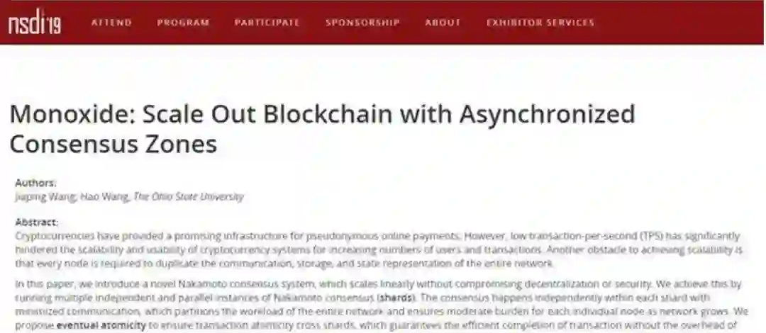 去年 12 月,计算机网络顶级学术会议 NSDI 宣布录用由王嘉平博士及汪浩博士撰写的区块链研究论文,该论文提出名为异步共识组 Monoxide 的区块链扩容方案,可以在由 4.8 万个全球节点组成的测试环境中,实现比比特币网络高出 1000 倍的每秒事务处理量,以及 2000 倍的状态内存容量,有望打破「不可能三角」这个长期困扰区块链性能的瓶颈。