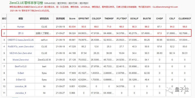 在零样本学习榜单中,“源1.0”超越业界最佳成绩18.3%,在文献分类、新闻分类,商品分类、原生中文推理、成语阅读理解填空、名词代词关系6项任务中获得冠军。