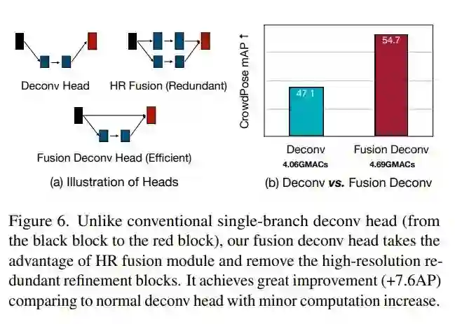 尽管本文起了Fusion Deconv Head这么个略fancy的名字,但在我眼中,这个东西不就是个残差结构吗,从ResNet到Hourglass和UNet,大家都在用,而本文的实验告诉我们,这条经验在轻量模型上也好用,而且是能涨点7.6AP的巨好用。