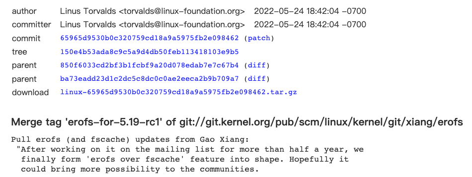 2.erofs over fscache 合入 5.19 内核提交链接: